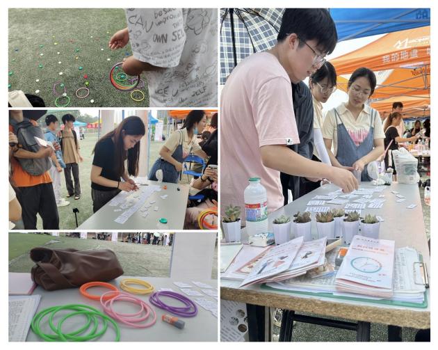 在本次游园活动中,我院心保部设置“超级套圈”小游戏,将连连看与套圈相结合,把心理名词与相应的解释一一对应,让同学们在感受游戏乐趣的同时了解心理相关知识。通过简单有趣的小游戏,不仅让同学们收获了快乐,放松身心,缓解和释放了学习生活当中压力,加强了同学之间的沟通和交流,也更好地普及了学生心理健康知识。
