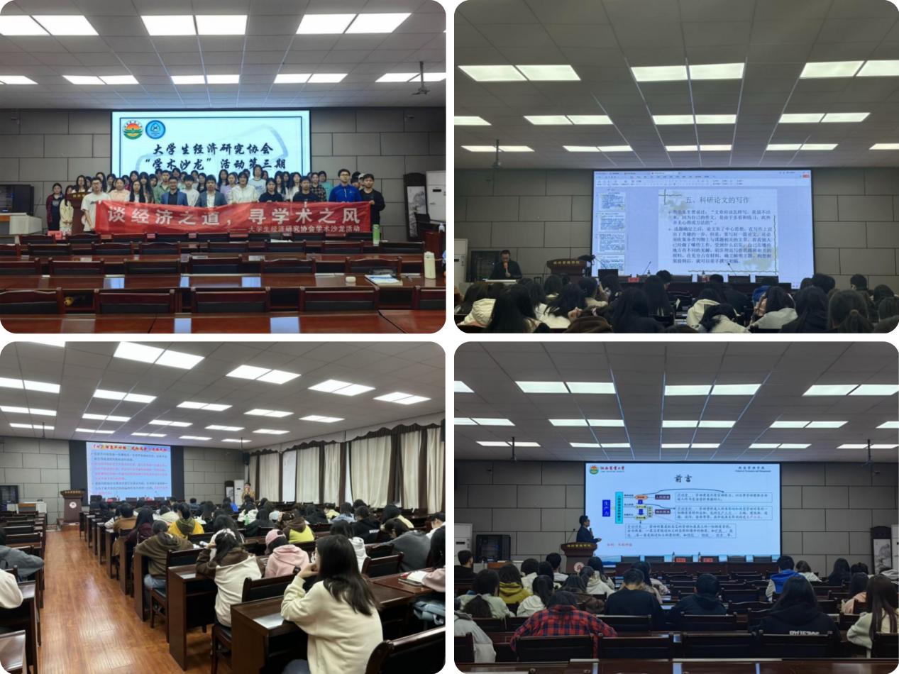 3月26日晚,白菜担保平台工商管理系梁志民教授分享了经济论文写作注意事项;大学生经济研究协会指导老师廖冰博士分享拓展了“生活中的经济热点”。4月9日晚,由农林经济管理系李秋生博士给同学们讲解农业新质生产力的内涵,并提出发展新质生产力的方法。4月16日晚,农林经济管理系王智鹏博士以“爱情婚姻经济学”为主题,向同学们科普了爱情中的经济学原理,并带领同学们从经济学的角度看待爱情。