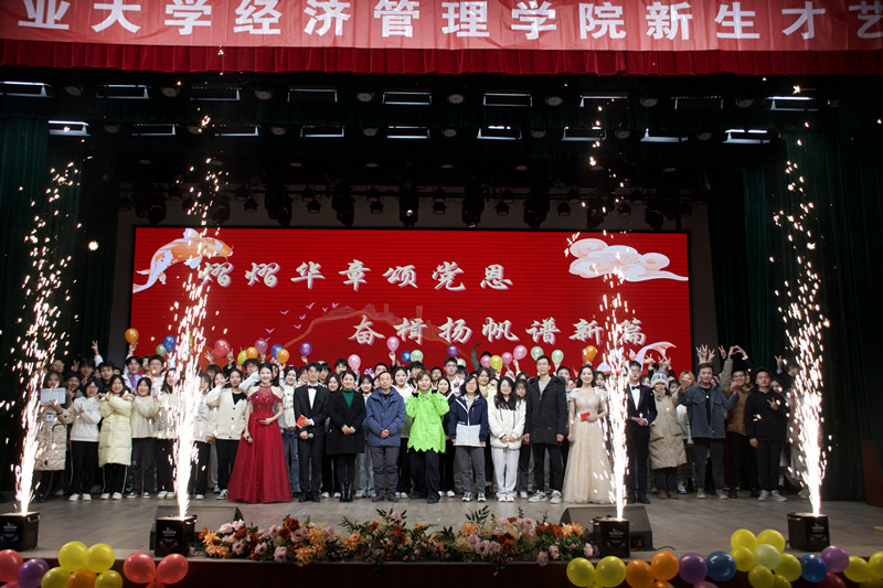 为丰富校园文化生活,激发学生青春活力,助力新生更好融入校园生活,经管学院于12月1日晚7点在江西农业大学大礼堂举办“熠熠华章颂党恩,奋楫扬帆谱新篇”新生才艺晚会。院党委书记郭军海、党委副书记赵刚、副院长张征华出席晚会,院团委、学工办、教学办老师以及新生班主任、班主任助理、2023级全体新生共同欣赏本次晚会。