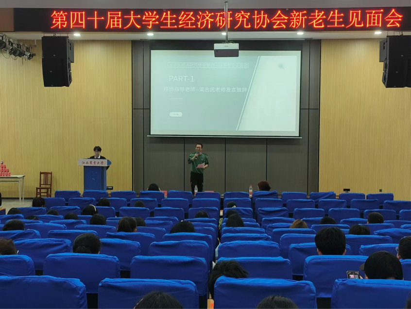 10月15日,以“新星璀璨,汇集经协”为主题的大学生经济研究协会第40届新会员与第39届老会员见面会在E-207教室成功举办。经管学院工商管理系教授、协会指导老师梁志民教授应邀出席。经协第39、40届新老会员约200人共同参与了此次见面会。会议由经协第40届部门负责人曹谱超和王香华主持。
