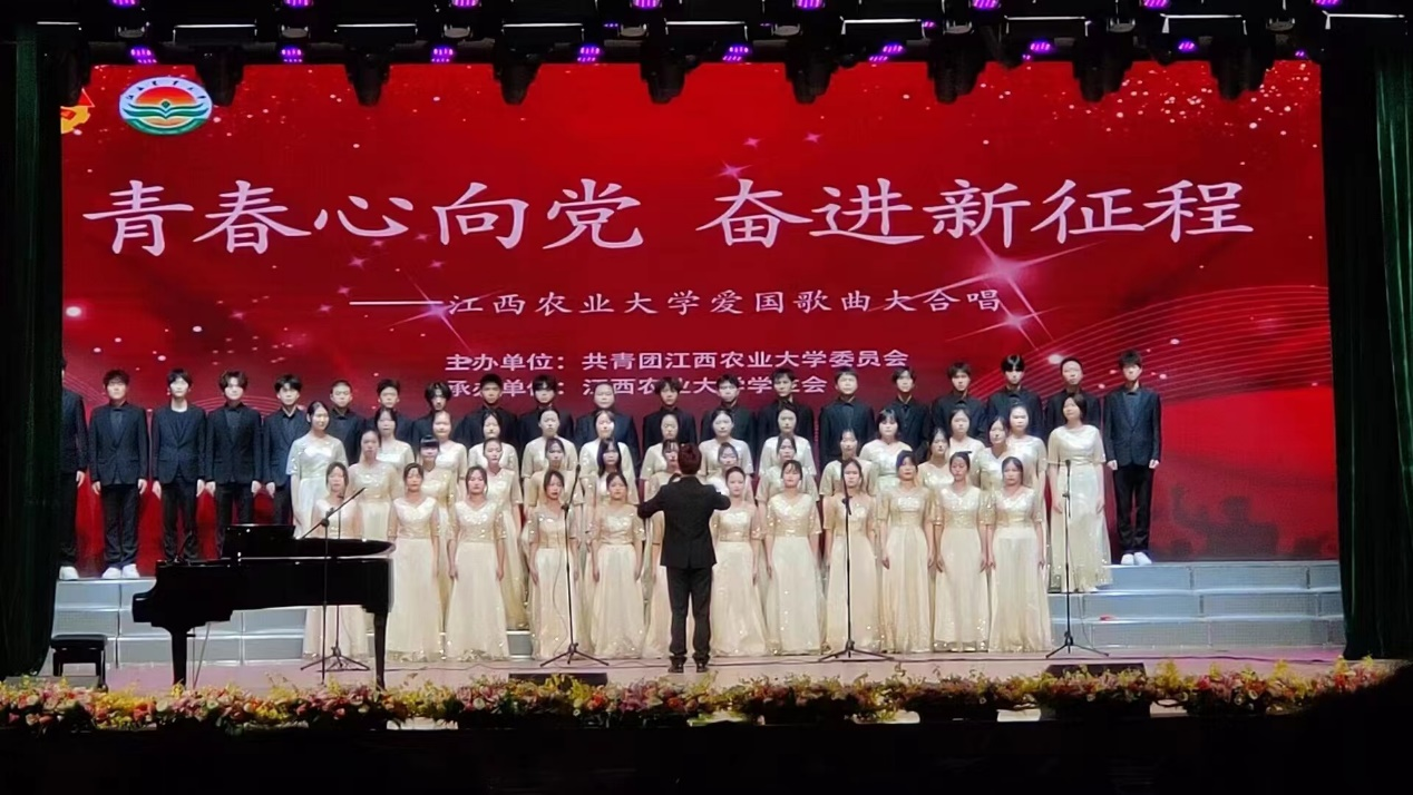 为喜庆党的二十大胜利召开,深入学习贯彻习近平新时代中国特色社会主义思想,3月29日晚,“青春心向党,奋进新征程”爱国歌曲大合唱大赛于我校隆重召开。经管学院表演的《在希望的田野上》获大赛三等奖佳绩。