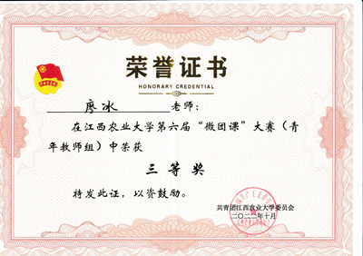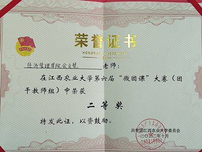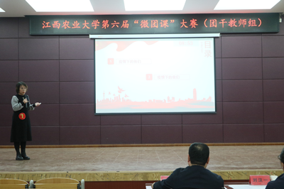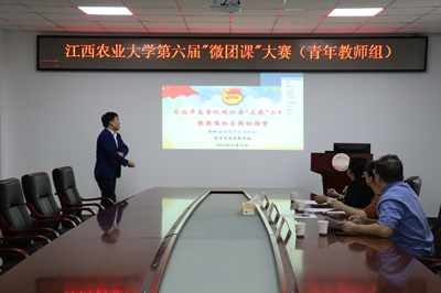 2022年10月25日下午,江西农业大学第六届“微团课”大赛决赛青年教师组和团干教师组分别在大学生活动中心403、501室举行。经过激烈角逐,学院余文慧老师以“齐心聚力抗疫情,青年学子勇担当”为主题进行讲授,荣获团干教师组二等奖;廖冰老师以“习近平总书记对‘三农’工作的指示”为主题进行讲授,荣获青年教师组三等奖。