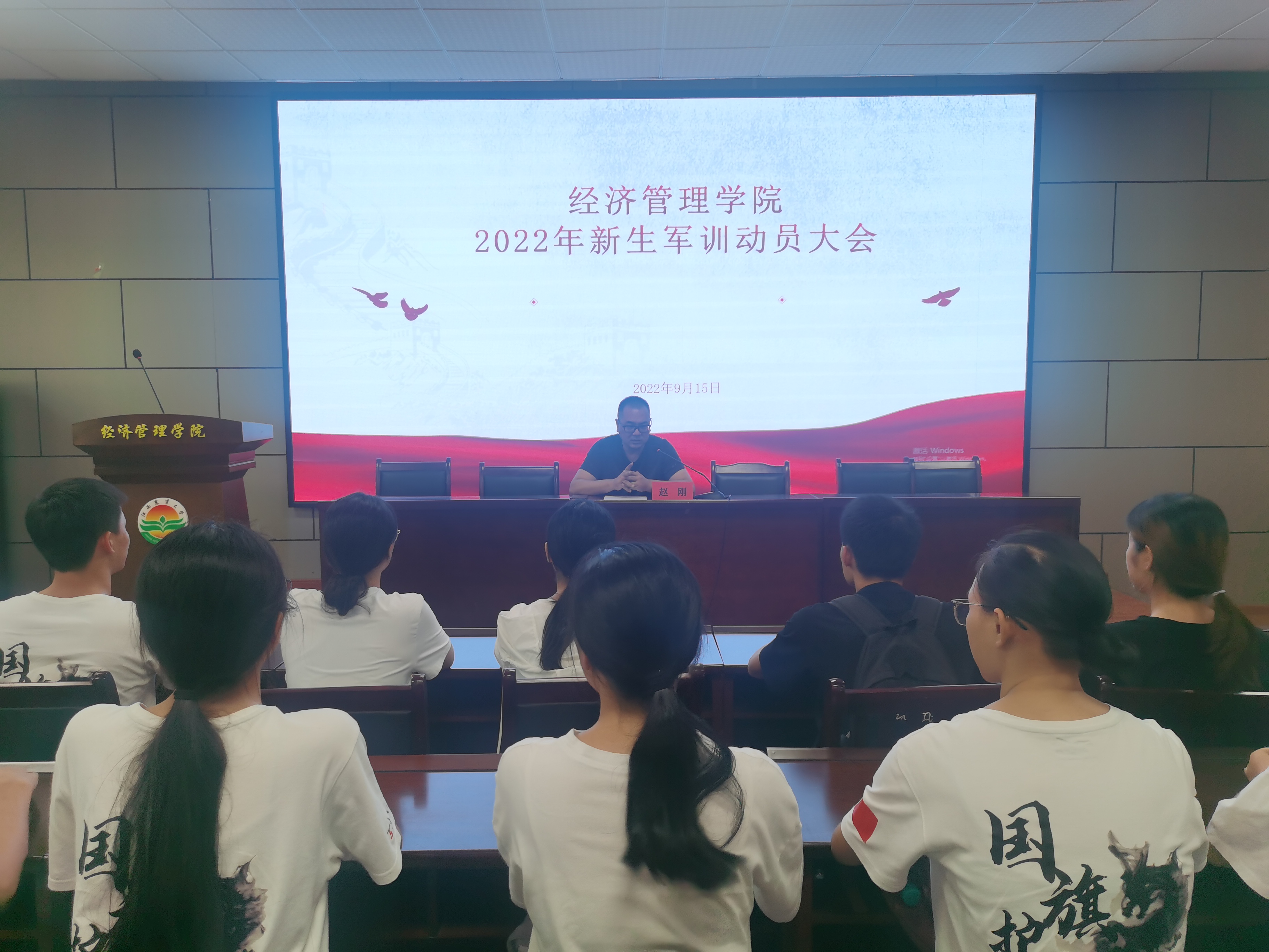 9月15日,我院于E-105开展军训动员大会,学院党委副书记赵刚、学工办赵晨刚老师、2022届全体新生班助以及负责此次军训的全体教官参与此次会议。会议由赵晨刚主持。
