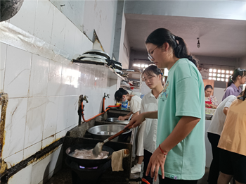 DIY制作炼劳育。热爱劳动是中华民族的优秀传统美德之一。在社会实践活动的最后一天,队员们自己动手,组织“乡”亲“乡”爱晚餐制作活动。队员们买菜、洗菜、切菜、烹饪等,纷纷展现十八般厨艺,制作了“三下乡”最后一天丰盛的晚餐,可乐鸡翅、油淋生菜等一道道家常菜诱人可口,所有队员享受了美味盛宴。通过日常生活“小事情”来提升劳动“大能力”,更好地丰富了队员的暑期业余生活,有效提高了团队凝聚力和归属感,提升了队员的动手能力。