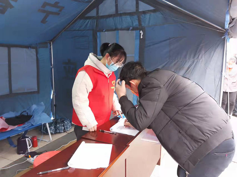 1月25日,临近春节假期,疫情防控工作迎来更大挑战。张娜同学来到竹笮高速路口,积极参与家乡防疫志愿服务活动。面对来自各省返乡的混杂人员的核酸检测及信息登记,张同学一丝不紊地进行工作。她引导过路车辆停车进行登记身份信息,帮助未使用过健康码的人激活健康码,在工作人员不足的情况下及时补位帮忙核酸信息的采集。张同学表示虽然有时工作需天黑之后才能结束,但能为守护家乡平安贡献自己的力量,便感到由衷的自豪与幸福。