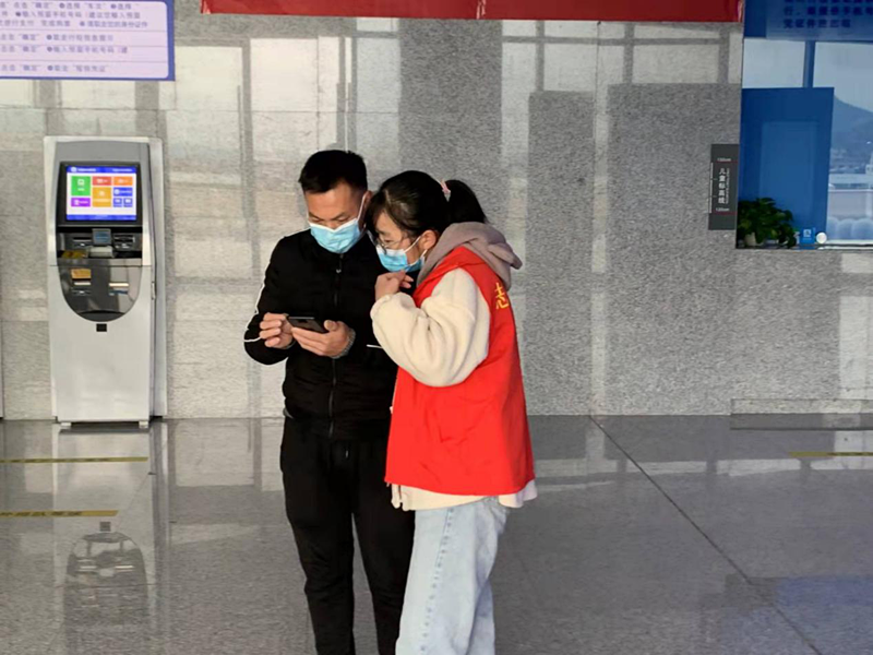1月18日早晨九点半,张娜同学忙碌的身影便出现在县火车站。引导进站乘客出示健康码并帮助其顺利进站、在出站口引导乘客分流出站、查看乘客健康码及行程码、维持车站秩序等都是张同学一日的工作安排。在志愿服务期间,当遇到未使用过健康码的老人时,张同学便热情帮助其激活健康码;当部分乘客因急于回家,不理解外省人员需做核酸检测的规定时,张同学则耐心向乘客们当前疫情形势并强调严格防疫的重要性,用实际行动守护家乡群众的生命健康。活动结束后,她表示对于她来说,乘客们感谢的话语便是最好的回报,再辛苦的付出也是值得。