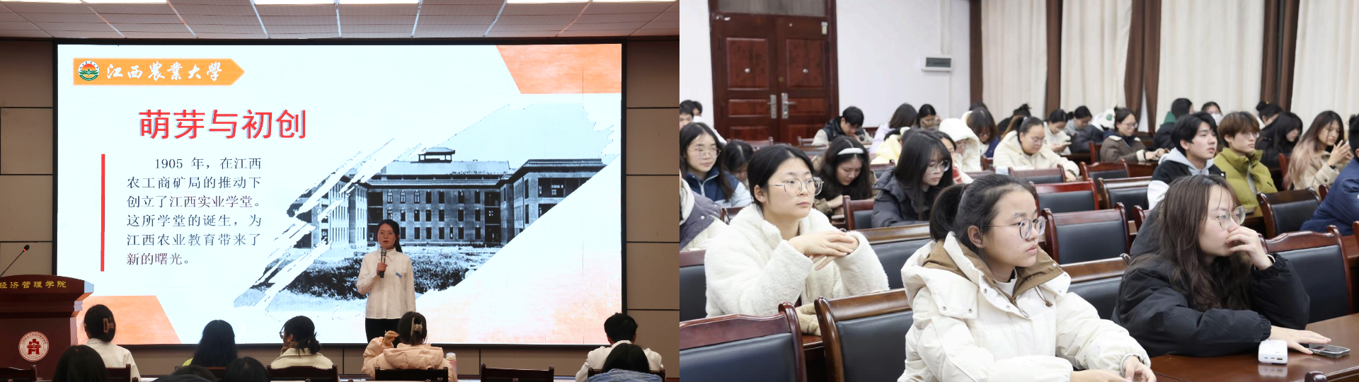 白菜担保平台“金种子”宣讲团以学院“经益求‘金’”党建品牌为依托,创建以来一直致力于通过常态化展开“讲好先进理论,说好使命担当,颂好红色经典,述好校史校情”宣讲活动,来传递正能量、弘扬主旋律。在宣讲团成员的带领下,大家先后走进了战火纷争的革命年代,了解方志敏烈士的英勇事迹,感受红色文化中的信仰之光;接着踏入了江农悠悠百年的历史长河,探寻它承载无数梦想与希望的发展轨迹;认识了“梅自寒开”的时代楷模张桂梅校长,感动她化为灯火照亮孩子们前行的路,赞叹她一路上始终践行的使命担当;学习了乡村振兴的先进理论、在农村地区的伟大实践,坚定努力投身乡村振兴的信念。生动的案例,真挚的情感,富有感染力的语言,让入党积极分子和发展对象、新发展团员更直观感受到青春榜样的力量,并从中汲取前进的动力。