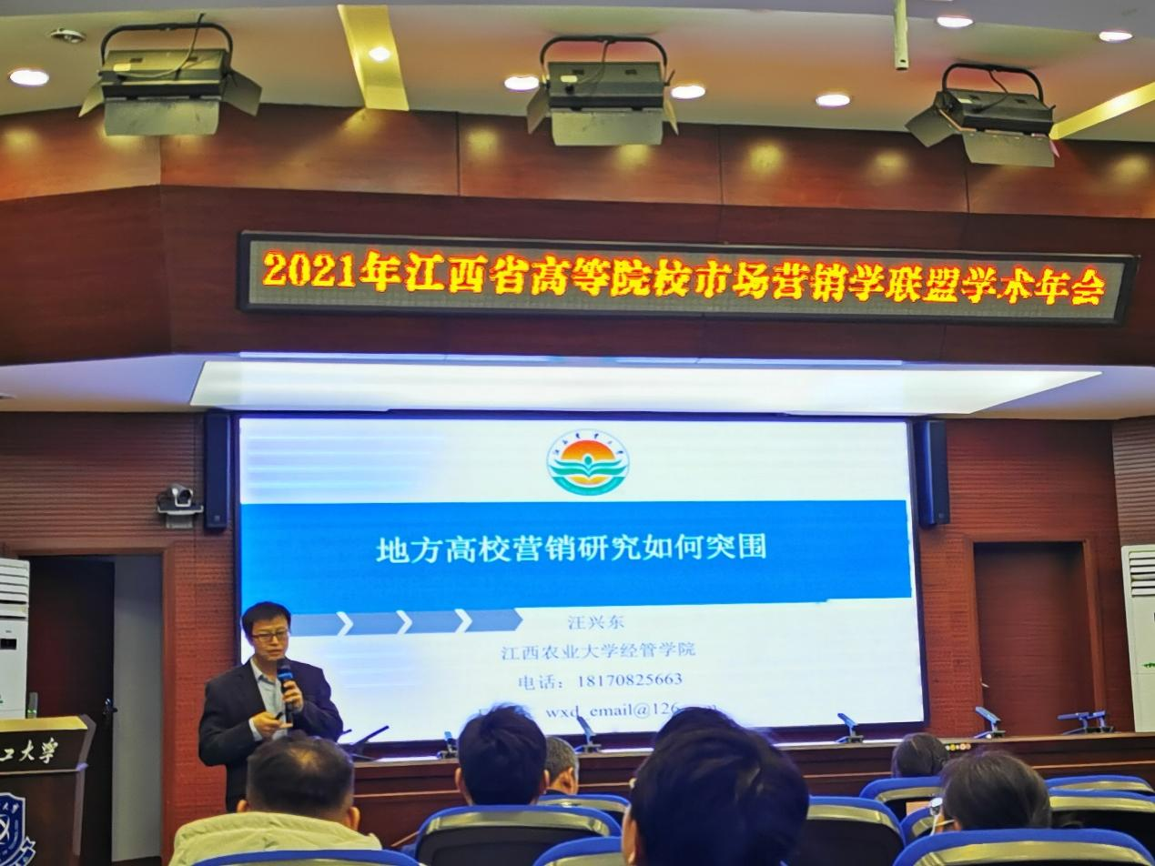 为共同探讨江西经济高质量跨越式发展与绿色营销创新,交流营销领域的最新研究成果,整合优秀学术资源,解决江西本土企业营销实践问题,“2021年江西省高等院校市场营销学联盟学术年会”于12月19日在东华理工大学召开。白菜担保平台副院长张征华教授应邀参加并担任嘉宾主持人、工商管理系汪兴东教授应邀在大会上做了主题报告。