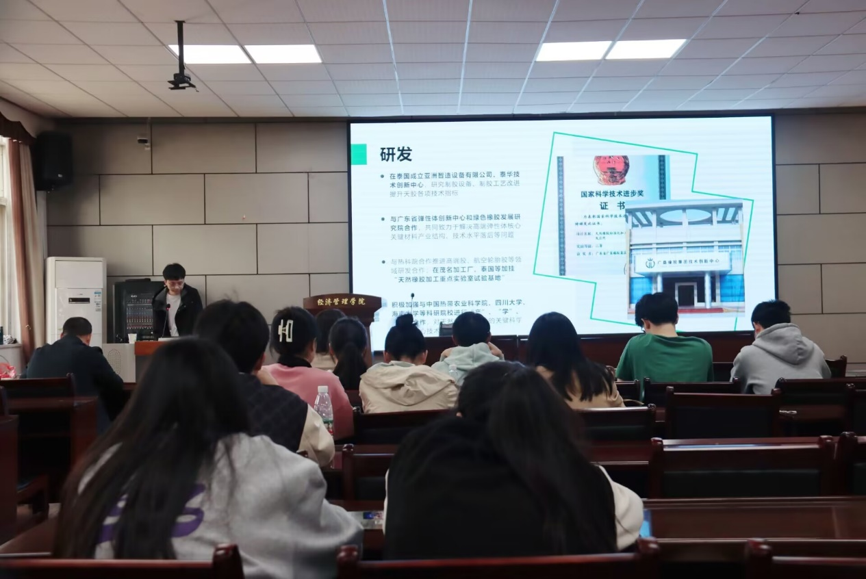 3月16日下午14:30,我院于经世楼207召开广东省广垦橡胶集团有限公司宣讲会,本次宣讲会由该公司HR余键聪主讲。
