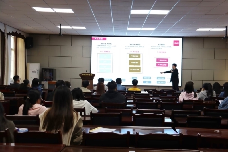 宣讲会伊始,王经理开门见山地介绍了毕业生们关心的薪资福利政策,打开了毕业生了解该公司的窗口。接着,王经理从公司的发展历程、招聘岗位、发展机制等几个方面展开介绍,并重点提到了得力自建的B2B系统,展现了得力作为“中国民营企业500强”的雄厚实力。最后,王经理秉持着“唯才是举、真才必用、德才兼备、以德为先”的公司人才理念,鼓励毕业生们积极投放简历。
