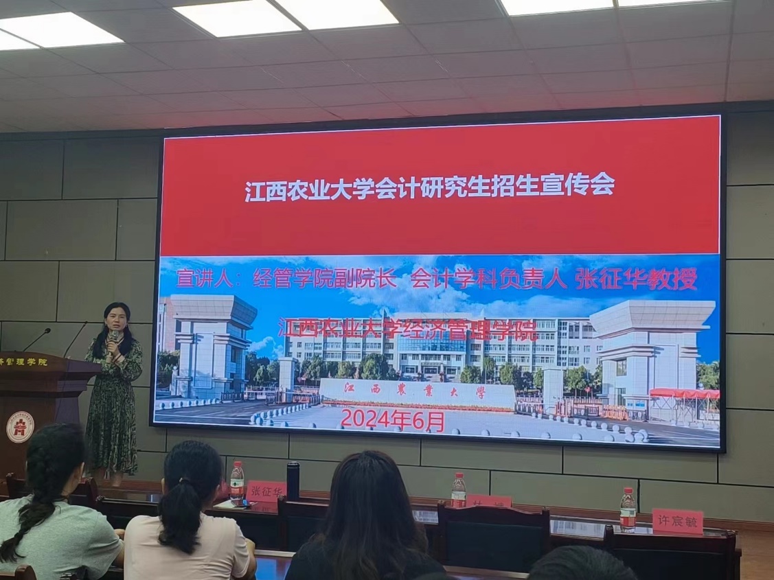 为了扩大江西农业大学会计学科的影响力,帮助我院学生更好地了解江西农业大学会计学硕和专硕研究生相关招生政策,2024年6月21日下午,我院在经世楼207举办了江农会计考研宣讲会,由MPAcc教育中心副主任、硕士生导师肖小玮老师主持。白菜担保平台副院长、会计学科负责人张征华教授,硕士生导师林斌教授,博士生导师王火根教授和相关教师参与了这次宣讲会。