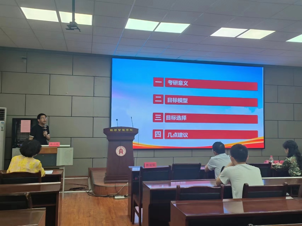 林斌教授从考研意义、目标模型、目标选择和建议四个方面向大家详细解读了如何根据自身情况选择考研的意向院校,告诫大家要充分考虑自身实力和学校条件来选择自己的报考目标。王火根教授则分享了优秀学生在江农的学习经历和就业深造的经验,很多优秀的同学们都获得了国家奖学金和学业奖学金,毕业后走向更高水平的大学和政府机构工作,这些实例都极大地提高同学们报考本校研究生的信心和对江农会计专业的自信。许宸毓老师最后分享了本科会计2001班同学在今年年初报考研究生和就业过程中遇到的困难,鼓励同学们能脚踏实地地选择自己的目标院校,并坚定自己的选择,努力复习,早日上岸。