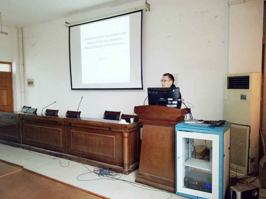 2018年12月5日,佛罗里达大学助理教授伍锋博士在经管院报告厅展开《Efficient Estimation of Risk Preferences》主题讲座,伍博士就风险偏好的有效估计等问题展开了详细讲解。
