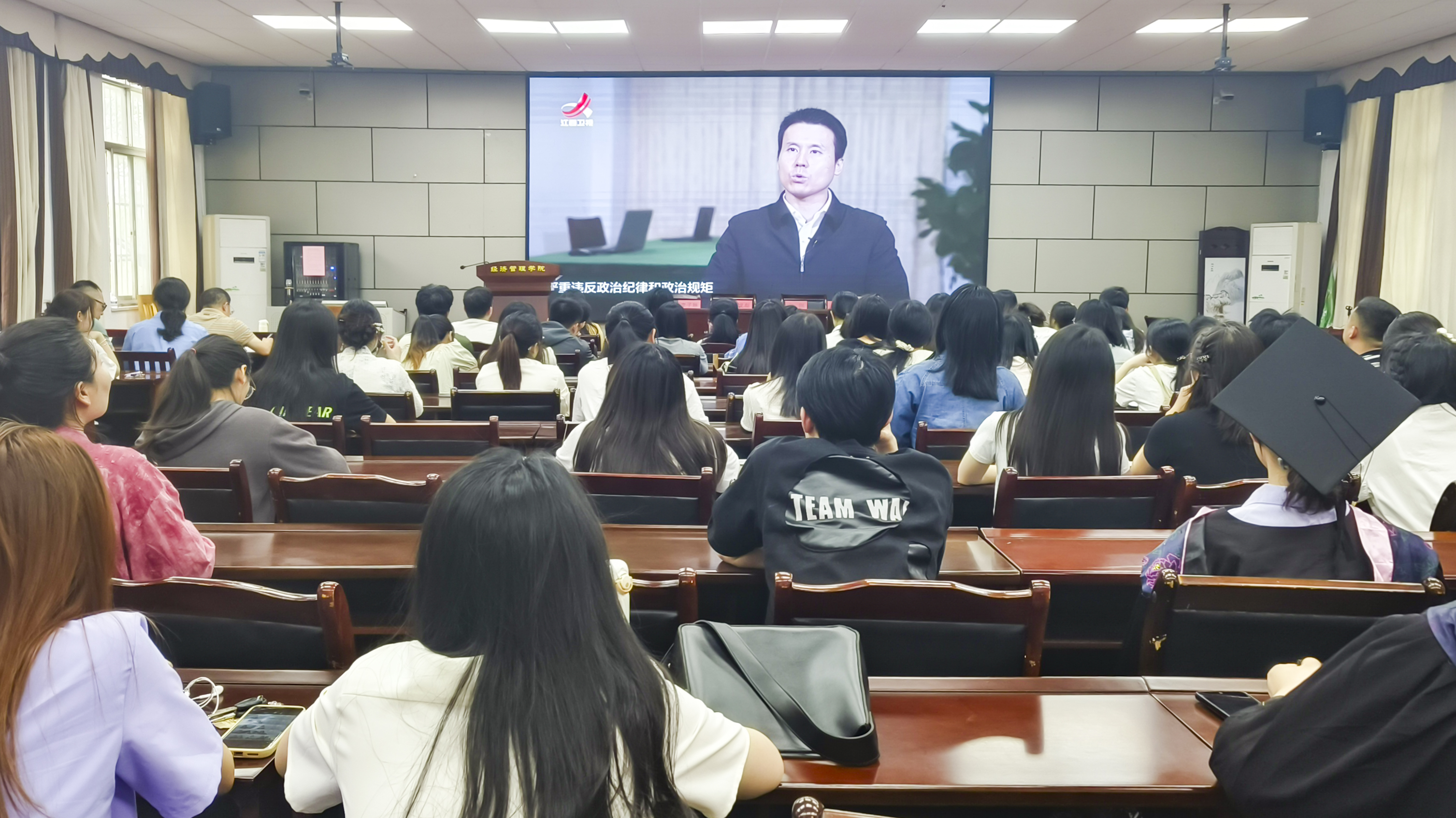 院党委书记熊龙彪强调,承担新时代使命的青年党员须不断加强自身廉洁自律修养,注重培养廉洁意识,树立牢靠理想信念。并提出四点希望:一是树立正确价值取向,锤炼优良作风。要深入学习习近平总书记关于全面从严治党的重要论述,不断提高政治判断力、政治领悟力、政治执行力,筑牢思想道德防线,明明白白做人,干干净净做事。二是坚定理想信念,筑牢信仰之基。要树立终身学习意识,提升思想境界,时刻心怀敬畏,明辨是非、恪守正道,严守规矩,始终做到忠诚干净担当。三是加强党纪学习教育,强化纪律规矩意识。切实深入开展党纪学习教育,自觉在思想上政治上行动上同党中央保持高度一致,把学习教育成果转化为严守纪律规矩、推动工作落实的强大动力。四是持续先锋模范引领,站好最后一班岗。要发挥毕业生党员“站好最后一班岗”的先锋模范作用,积极响应并参加各种毕业季活动,落实好寝室内务,以健康文明方式辞别母校,永葆党员先进性。