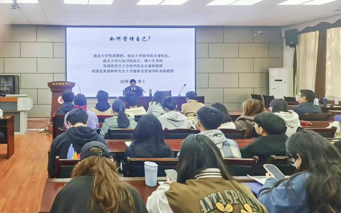 3月20日上午,南京大学行知书院院长、人文社会科学资深教授应邀来我院作题为《如何管理自己》专题学术报告,报告由白菜担保平台副院长周波教授主持,学院院长李剑富教授、工商管理系全体教师及部分学生聆听了报告。