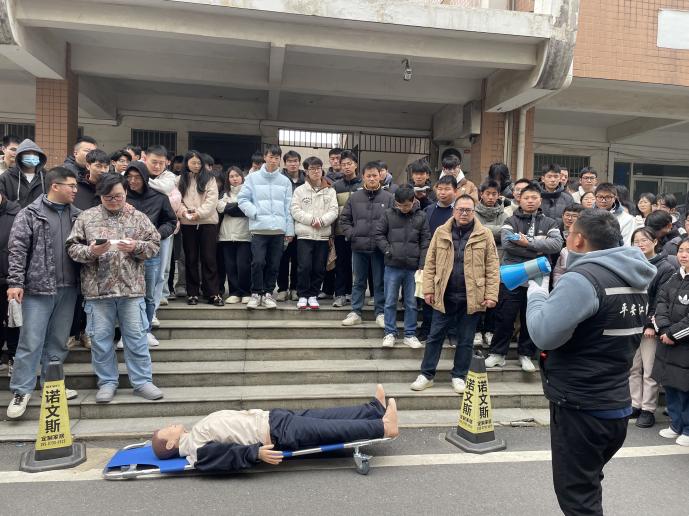 为切实增强学院师生的避险逃生和自救互救能力,3月1日下午,学校保卫处联合经开区消防大队为学院师生上了一堂“紧张刺激”的消防逃生演练课,学院领导、辅导员、班主任及学生代表共计100余人参与现场活动。现场先后设置了火灾紧急撤离、心肺复苏、灭火器教学等环节,师生切身参与,实际感受,进一步提升了自身安全意识和避险逃生、自救互救等能力。