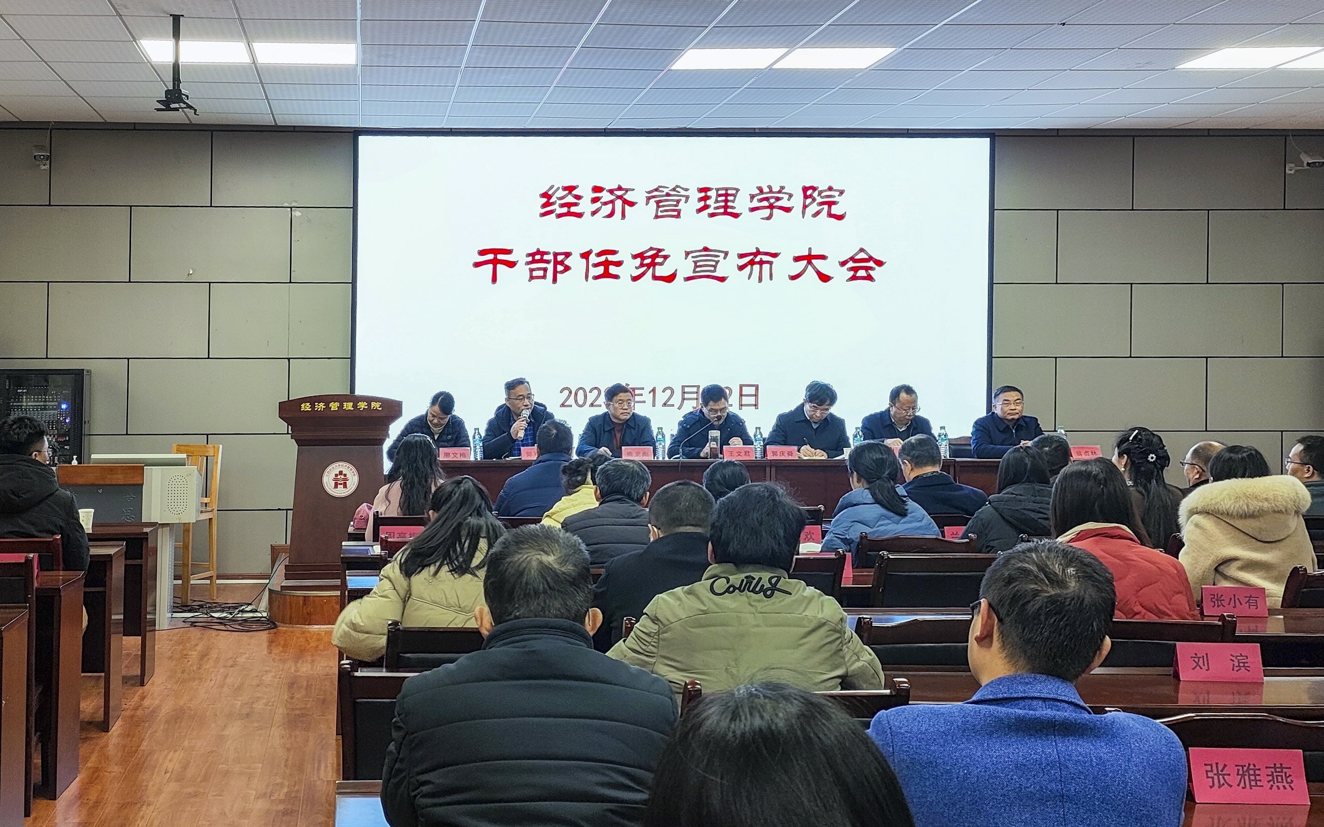 12月12日上午,副校长王文君代表学校党委到经管学院宣布干部任免决定。会议由校党委组织部部长郭庆舜主持。