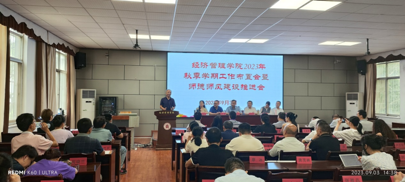 9月3日下午,学院在经世楼207会议室召开2023年秋季学期工作布置会暨师德师风建设推进会,全体院领导及教职工参加了本次会议。会议由院党委书记郭军海主持。