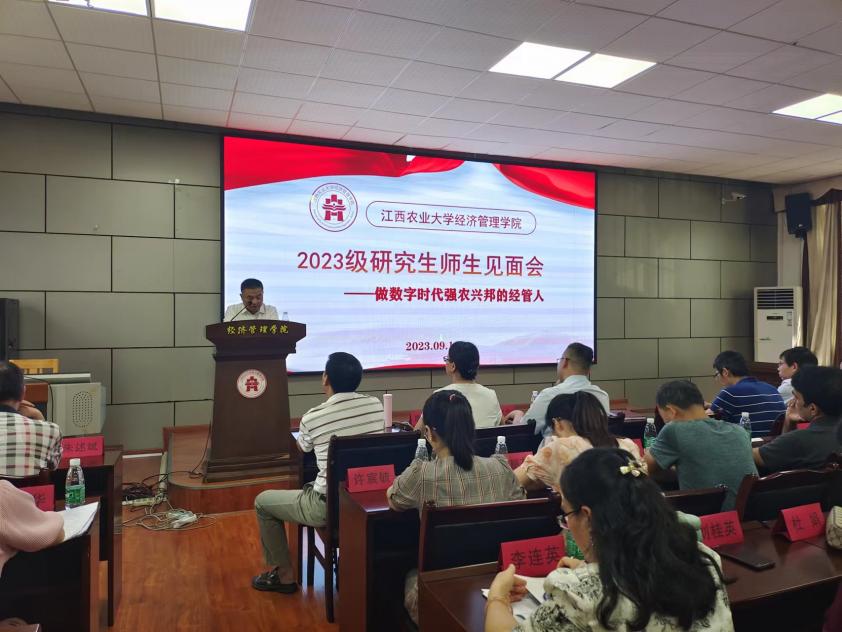 为增进研究生新生对学院的了解,加强研究生新生与导师之间的交流,提升研究生培养质量,9月11日下午,经管学院在经世楼207会议室召开2023级研究生师生见面会,全体研究生导师和研究生新生参与此次大会。会议由副院长周波教授主持。