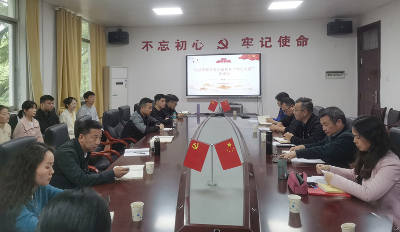 为高质量推进主题教育,真正做到惠民生、暖民心、顺民意,4月27日下午,经管学院党委领导班子成员召集本科生代表、研究生代表、专任教师代表、辅导员代表、学院中层干部代表和高级职称教师代表,召开主题教育“师生出题”座谈会,广泛征求意见建议。座谈会由院党委书记郭军海主持。