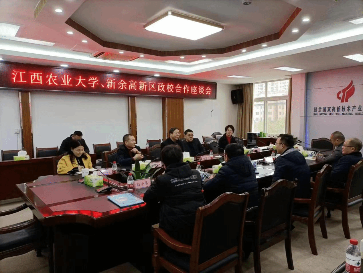 当天上午,院领导一行前往新余国家高新技术产业开发区管委会看望慰问在此挂职锻炼的学院教师李明玉博士,同时与新余高新区领导举行政校合作座谈。座谈会上,新余高新开发区党工委书记喻国杰介绍了高新区经济社会发展状况,尤其是产业布局和发展状况,同时对李明玉博士近一年来的挂职工作表现表示充分肯定和高度评价,并表示以此为契机开展与学院的政校合作。郭军海对李明玉博士表示慰问,并对新余高新开发区给予李明玉博士的培养和关心表示感谢。翁贞林介绍了学院学科发展、专业建设、人才培养和社会服务状况,同时表示希望与新余高新开发区开展政、校、企协同人才培养,服务产业高质量发展和乡村全面振兴。