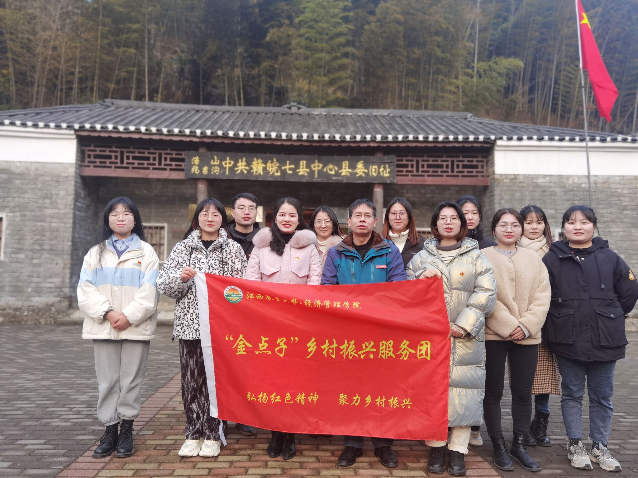 落实立德树人任务,精心培育“金种子”。人才是第一资源,乡村要振兴,人才是关键。学院锚定培育“一懂两爱”新时代农经人才,注重发挥社会实践的育人功能,在调研中主动融入课程思政元素,注入红色新动能,旨在为乡村振兴战略的全面实施培育更多的根正苗红的“金种子”。在红色故都瑞金,“金种子”乡村振兴服务团走进沙洲坝,参观红井,饮水思源,追寻红色印记,传承红色基因,助力乡村振兴;在彭蠡之滨彭泽,“金点子”乡村振兴服务团前往兆吉沟红色教育基地,参观中共赣皖七县中心县委旧址,重温入党誓词,聆听党史故事,厚植家国情怀,感悟信仰力量,坚定理想信念,增强使命担当。