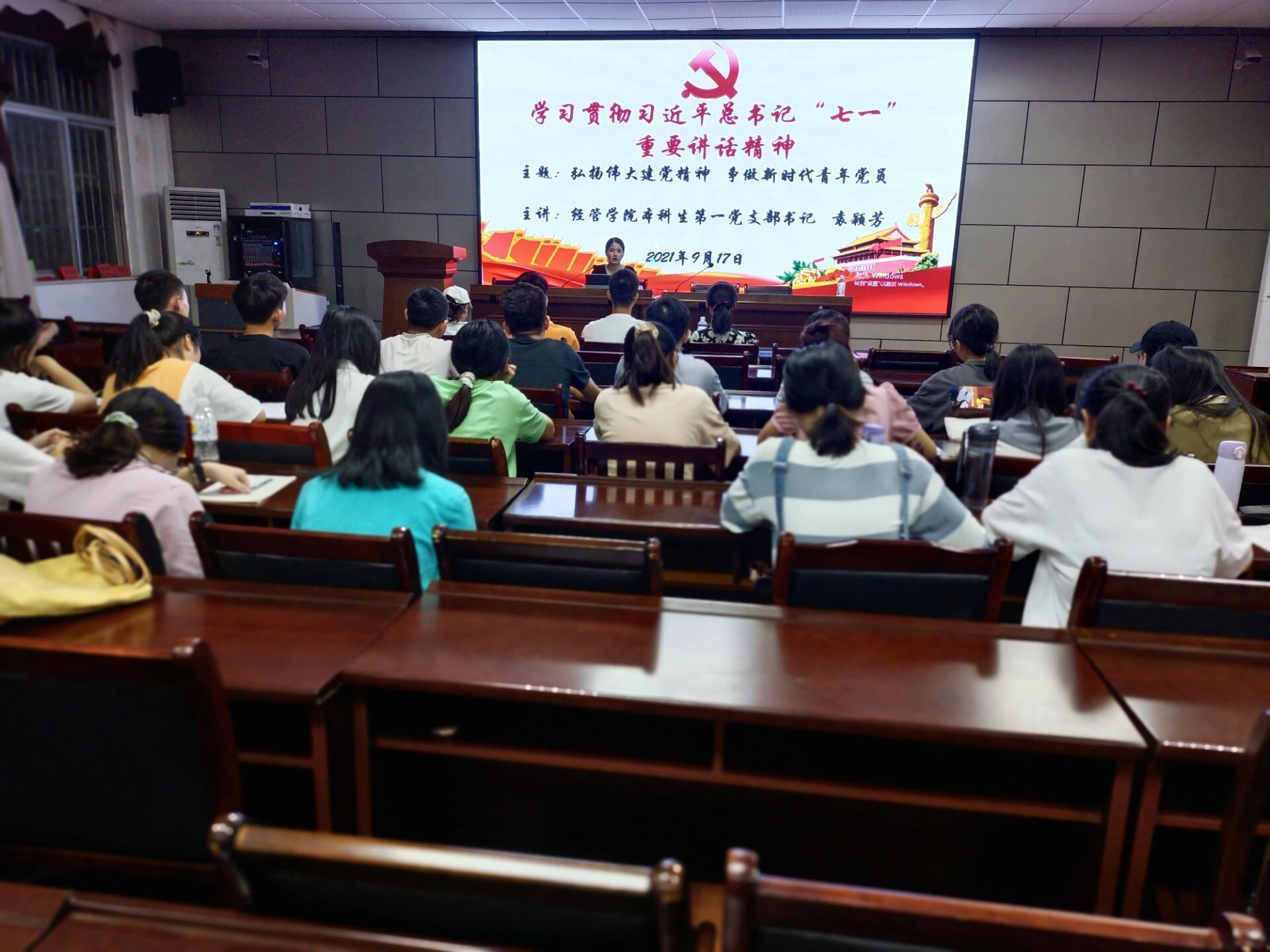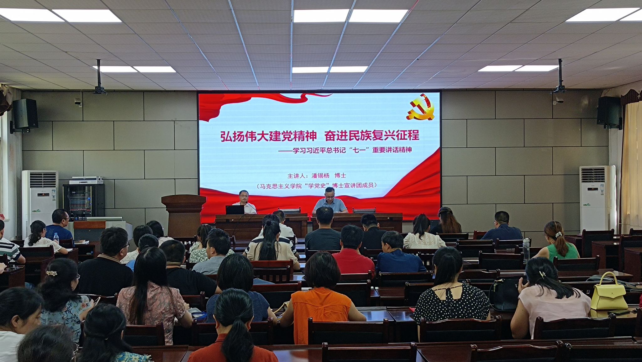 一场理论辅导醍醐灌顶。为更深入理解习近平总书记“七一”重要讲话总体内容、思想脉络,感悟党的百年奋斗光辉历史。9月14日,学院特邀马克思主义学院潘锡杨博士为全院师生党员作题为《弘扬伟大建党精神,奋进民族复兴征程》的宣讲报告,报告重点围绕伟大建党精神是中国共产党的精神之源,全面介绍了中国共产党人的精神谱系,从伟大建党精神的形成条件、提出背景、主要内容和内在逻辑等四个方面,深刻解读了伟大建党精神的科学内涵和时代价值。师生党员围绕重要讲话精神进行了心得撰写,积极参与了征文比赛,更加深刻领悟了中国共产党取得的伟大成就,践行初心使命、强化责任担当。