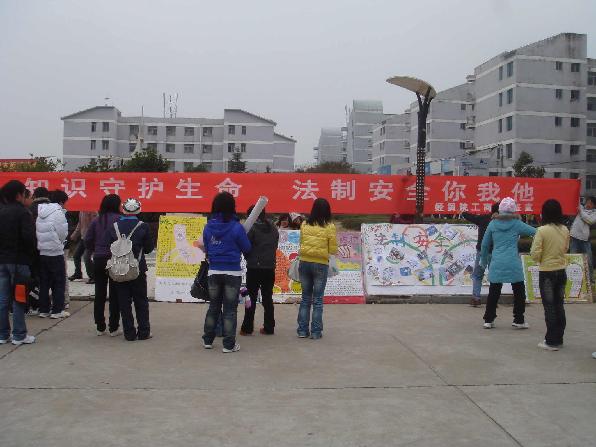 18日下午,经贸学院在南区广场举行法制安全宣传教育展板展示活动。为了做好全院的法制安全宣传教育工作和防甲流工作,学院精心制作了法制安全宣传教育展板,展板包括公共安全、人身财产安全、消防安全、饮食安全、甲流防控等五个方面的内容。图文并茂的内容、翔实的展板材料,吸引了许多过往同学驻足观看。当晚,学院在五教举行了法制安全宣传教育大型签名活动。近600名同学在“知识守护生命、法制安全你我他”的横幅上签名,许下关爱生命、关注健康、构建和谐平安校园的承诺。此外,学院还专门制作了经贸学院法制安全宣传教育手册,向新生宣传法制安全知识并分发到学生宿舍。手册内容包括宿舍防火、防盗的基本方法及火灾事故的处理方法等。