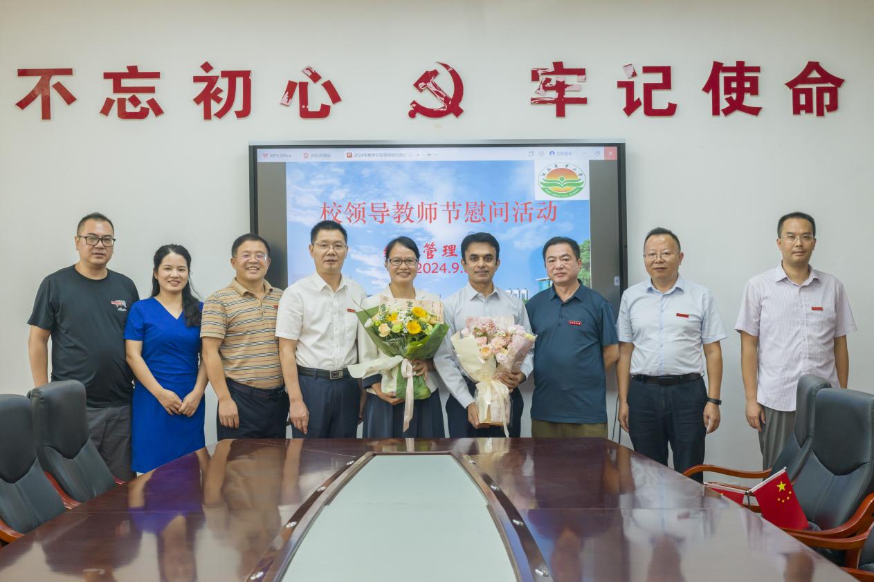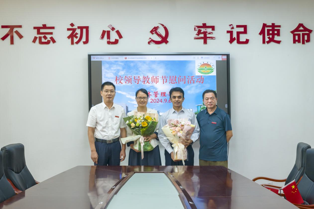 9月6日,在第40个教师节来临前夕,副校长王文君一行前往经管学院调研指导,并看望慰问我院廖文梅教授及外籍教师Tariq Ali(马文)教授,经管学院领导班子成员参加。