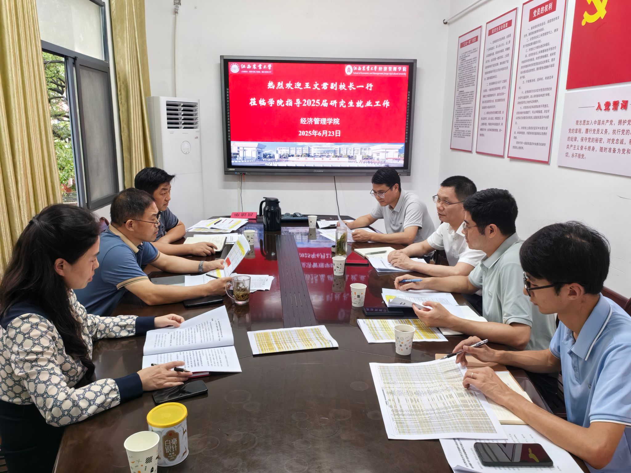 王文君详细查看了学院2025届毕业研究生就业工作台账,对学院在研究生就业工作中付出的努力给予肯定,强调要按照“准、细、实”要求做好下一阶段就业工作。一要提高政治站位,增强危机感和紧迫感,严格落实就业工作“一把手”工程,加快推进毕业研究生就业工作;二要细致摸清毕业研究生真实就业意愿和就业进展,建立动态工作台账,加强精细化分类指导,引导研究生认清形势树立正确就业观;三要严格落实学科专业“红黄牌”提示制度,主动加强就业与招生、培养工作联动,适应优化学科专业布局;四要督促导师全过程指导和帮助研究生成长成才,建立良好的师生互动关系,充分发挥导师在研究生就业工作的独特优势,为促进毕业研究生就业提供指导与帮助。