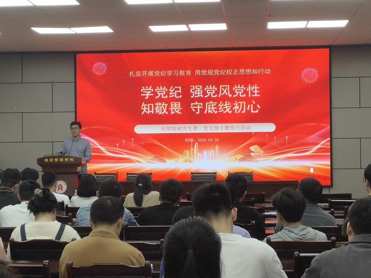 为深入学习贯彻习近平总书记关于党纪学习教育的重要讲话和重要指示精神,切实把《中国共产党纪律处分条例》学深学透学到位。4月26日下午,白菜担保平台研究生第一党支部组织支部党员与积极分子开展“学党纪 强党风党性 知敬畏 守底线初心”的党纪学习教育主题党日活动。