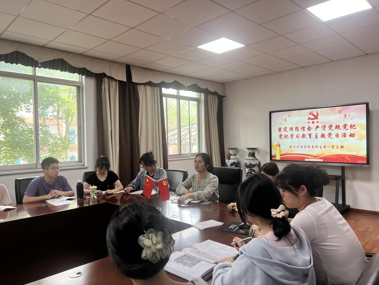 活动伊始,支部全体党员一同观看了警示教育片《持续发力 纵深推进》,深刻认识到贪污腐败的危害性,激发了加强自我约束、坚守廉洁自律底线的决心和信心。紧接着支部组织委员叶如宽同志带领全体党员共同学习《中国共产党纪律处分条例》第六章“政治纪律”板块内容,通过集体学习不断增强纪律意识,守住纪律底线,提升党性修养,真正做到心有所畏、言有所戒、行有所止。随后,大家一同倾听了优秀校友刘瑶的精彩就业故事,支部成员收获颇多,积极分享,谈及要想成为堪当重任的时代新人就必须立下鸿鹄之志,积极投身于实现中华民族伟大复兴事业中。最后,支部书记曹欢老师进行总结性发言,强调支部党员应以“学”为舵、与“纪”同行,做到“固根基”“增才干”“务实效”,让党纪学习教育成为自身不断适应时代、服务时代的强大引擎。