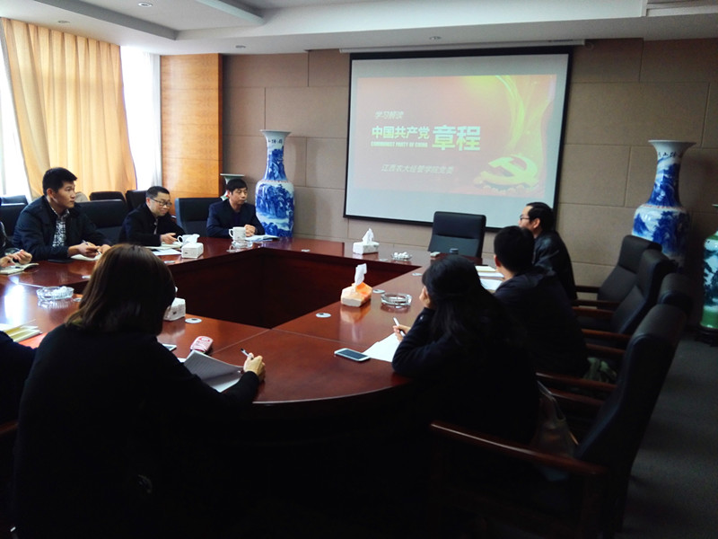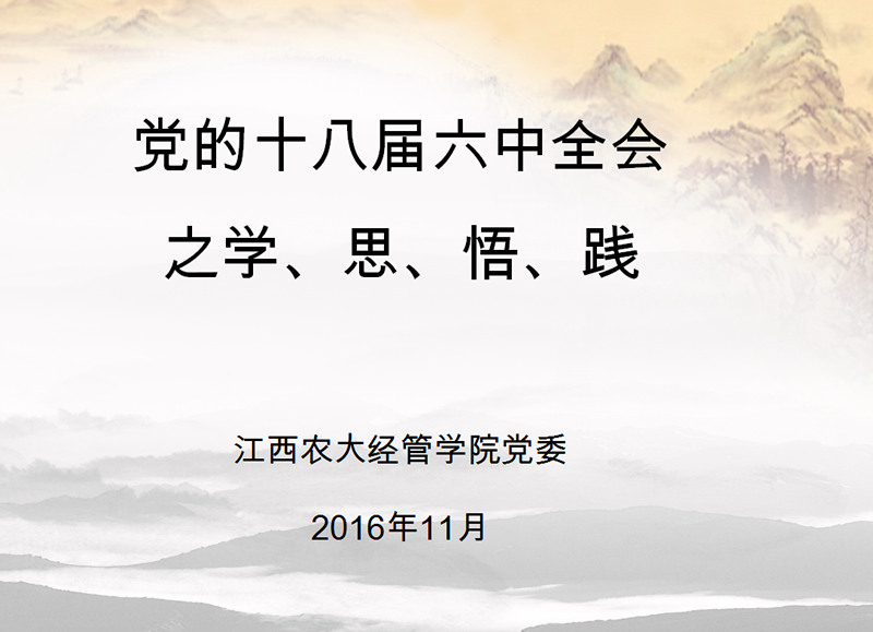 院党委书记郭如良同志结合自己的学习体会,以《党的十八届六中全会之学、思、悟、践》为题作了一小时专题报告。郭书记首先以详实的资料对党的十八届六中全会的召开背景进行了阐释,并重点就如何学习党的十八届六中全会精神向在场人员传授了方法,他指出,学习要读公报,读讲话,读文件,要明白一个核心、两个任务、三件大事的会议任务。关于如何落实党的十八届六中全会精神,他强调,在仰高线、止底线的同时,要力行自励自勉,做新时期忠诚、干净、担当好干部。会议最后,学院党委要求各基层党支部书记要迅速将党的十八届六中全会精神传达到本支部。