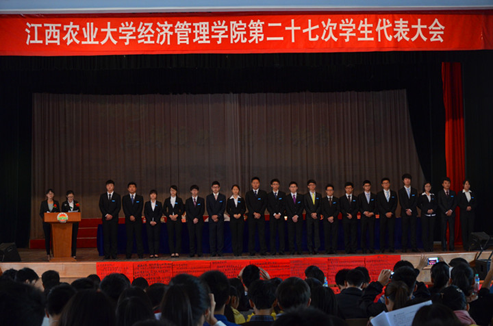 我院第二十七次学生代表大会在民主、团结、务实、创新的氛围中圆满落下帷幕。此次学代会的召开,不仅对我院学生工作的开展起到了极大的推动作用,使新一届学生会委员们明确了自己身上的责任与使命,更是我院落实党的群众路线教育实践活动的关键。学院党政领导始终强调,学生干部作为服务同学的集体,也要用群众路线路线要求自身,要学会自我批评,要让同学感受到切实的温暖。我院也始终要求学生干部队伍必须从同学中来到同学中去,必须代表广大同学的根本利益,也必须是能服务好同学的优秀干部。此次会议在民主公开的氛围中圆满召开,是我院师生民主生活的一件大事,更是我院在群众路线道路上迈下的坚实步伐。(经管学院)