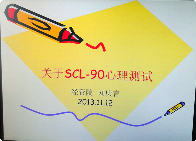 11月12日下午,为方便我院2013级新生班主任更好开展班级工作,使班主任更好地做好服务学生的工作,学院党委副书记刘庆言副教授在院办303专门为2013级新生班主任举办了关于《SCL‑90》的小型报告会。院学工办老师、教学办老师一起聆听了报告。