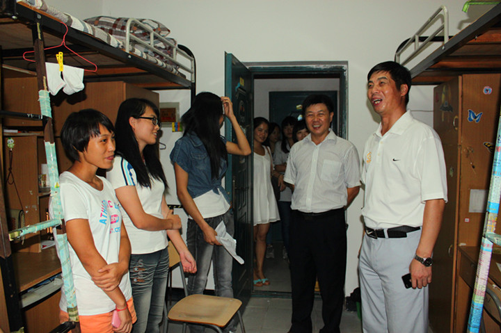9月8日晚,我院院长陈昭玖,党委副书记刘庆言,副院长郭锦墉、朱述斌、胡凯在我院团委老师及部分新生班班主任的陪同下,走访各新生寝室,传达了学院对2013级新生的深切关怀以及对他们大学四年的期望。