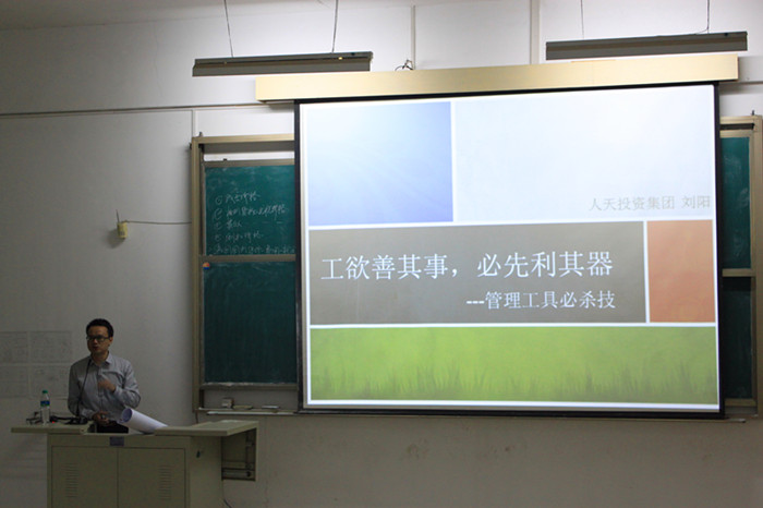 刘总监以“工欲善其事,必先利其器”为题,利用简明了的ppt,配以生动活泼的实际实例和自身经验,为在场学子讲授了一堂受益匪浅的“管理工具必杀技”课程。学生们认真聆听,积极参与课堂互动,刘总监也耐心的对同学们的问题答疑解惑,给同学们提出宝贵的建议。