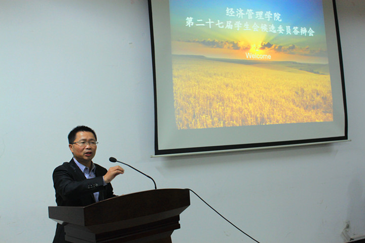 最后,学院党委副书记刘庆言发表重要讲话,他首先提出学生会的工作建设要积极地走“群众路线”,从各个工作方面的细节入手,从学生的意见中来,也要回归到学生的意见上去。要为学生会和学生之间的交流打造坚实的基础,从而更好地使学生代表锻炼自我,服务同学。