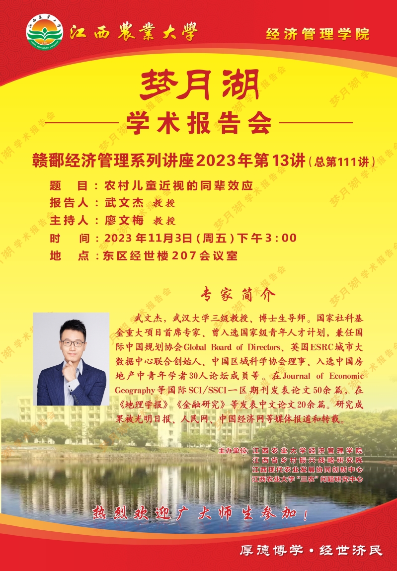 【学术报告会】农村儿童近视的同辈效应