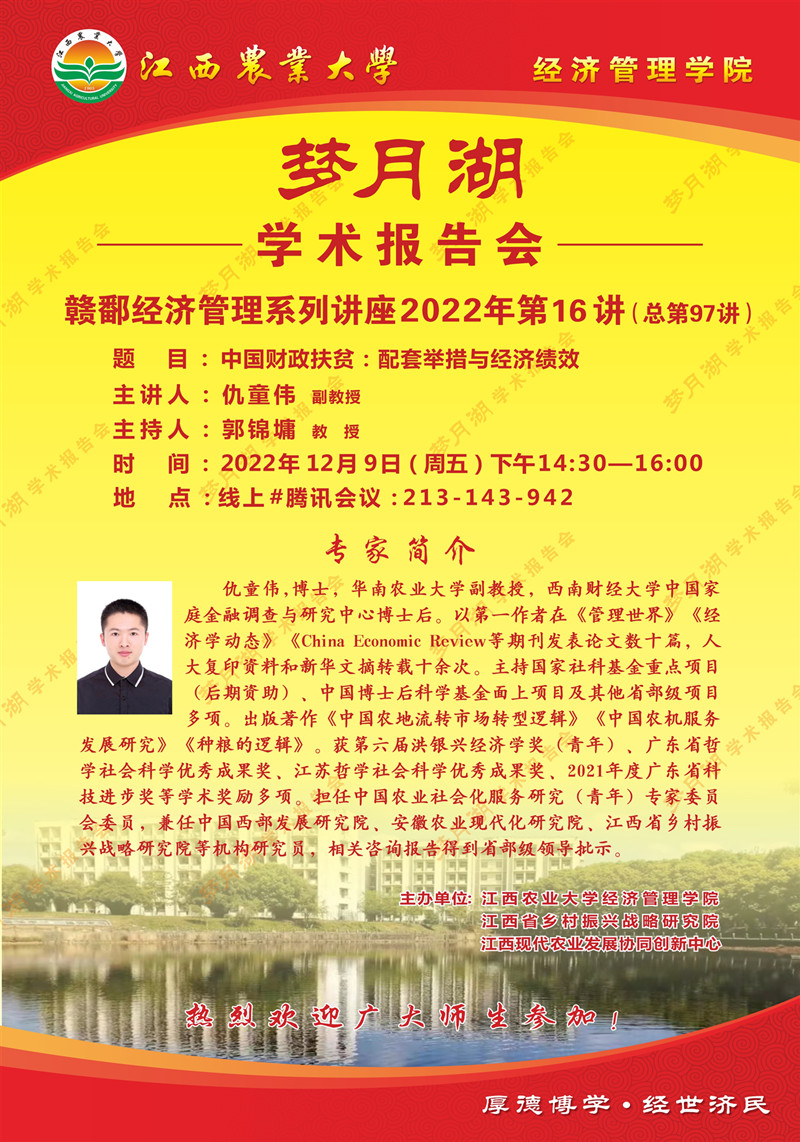 【学术报告会】中国财政扶贫:配套措施与经济绩效