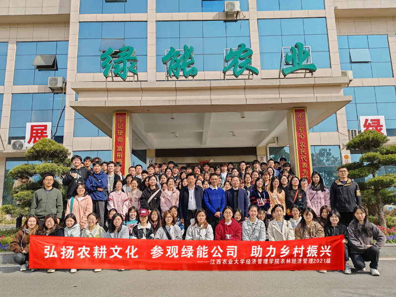 3月12日,经管学院农林经济管理专业2021级全体130余名同学在农经系曹大宇、陈江华、李秋生三位老师共同带领下,赴江西省绿能农业发展有限公司开展“以行促学,学以致用”主题教学实践活动。
