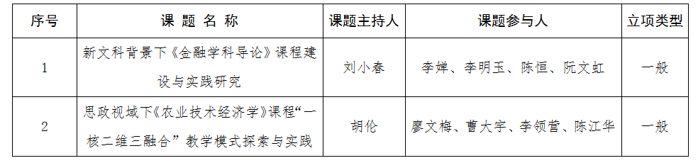 近日,江西省教育厅公布了《2022年江西省省高等学校(本科层次)教学改革研究课题拟立项项目名单》,经管学院2名教师申报的课题成功获批立项。具体信息如下表所示: