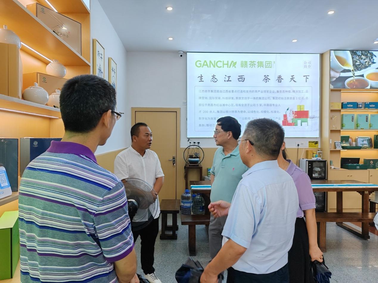 黄季焜一行先后来到遂川县调研堆子前镇堆前村金桔产业、雩田镇皋村村湖羊产业、新江乡横石村林业产业,走进新鹭食品厂、汤湖镇神茶谷、南屏茶厂,深入狗牯脑茶叶生产核心区域,查看狗牯脑茶叶种植情况,与茶叶企业负责人交流,详细了解各乡镇特色产业发展情况和当前产业发展存在的问题。