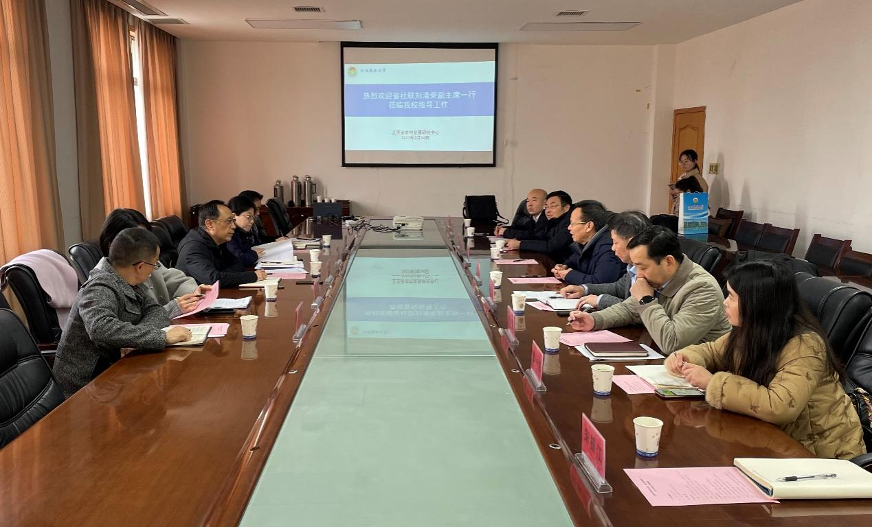 为进一步推动我省哲学社会科学重点研究基地建设工作再上新台阶,2月14日,省社联党组成员、副主席刘清荣带队来我校调研省哲学社会科学重点研究基地“江西省农村发展研究中心”建设工作情况,听取研究基地建设意见,指导研究基地发展。副校长黄英金主持座谈会,学校科技处、江西省农村发展研究中心、白菜担保平台负责同志和基地专家代表等参加座谈。