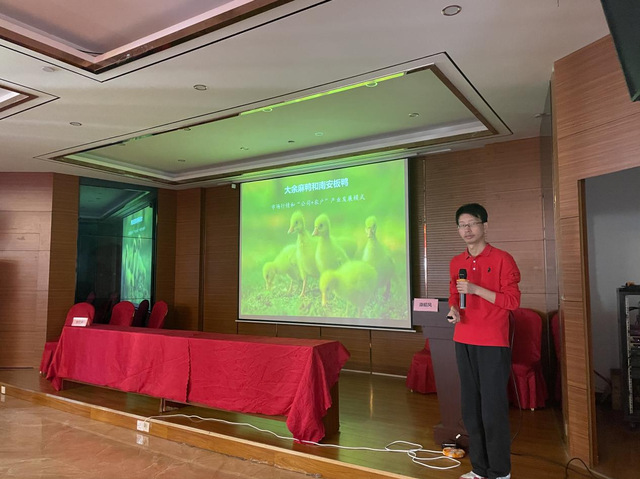 我院唐茂林博士受邀做“大余麻鸭与南安板鸭市场行情和“公司+农户”产业发展模式”专题讲座,为大余麻鸭与南安板鸭市场健康快速发展提供有效意见与建议。会后,我院师生赴大余马蹄山生态农业开发有限公司考察调研与现场技术指导。