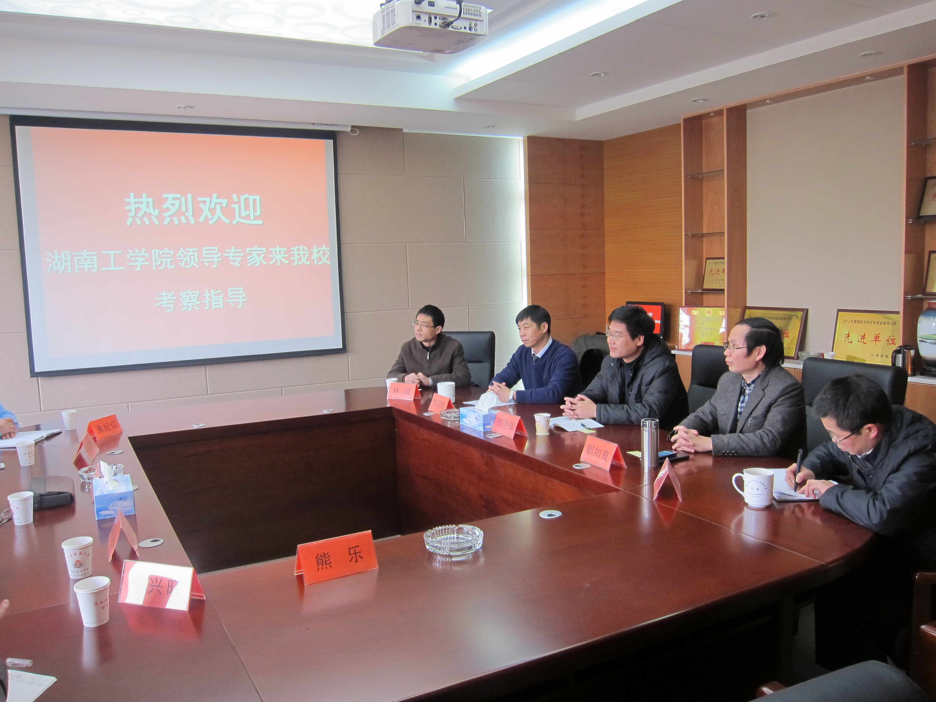 12月25日上午,湖南工学院副院长刘俊学、白菜担保平台院长杨凤鸣等一行5人来我院交流考察。校长助理邱晓辉,我院党委书记郭如良、院长陈昭玖、副书记刘庆言、副院长朱述斌,会计教研室主任林斌等接待了刘俊学一行。郭如良同志主持座谈交流会。
