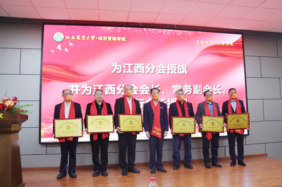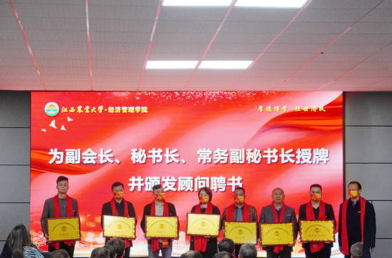 随后,副校长许斌华、黄英金,校友办主任朱小玉为江西分会会长、常务副会长、执行会长、副会长、秘书长、常务副秘书长授牌,并为江西分会顾问、副秘书长、理事颁发聘书。